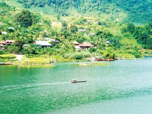 10h00: Đến Hồ Suối Chiếu, Quý khách lên thuyền du lịch thăm quan lòng hồ, ngoạn cảnh non nước xanh biếc trữ tình như bản tình ca giữa núi rừng Tây Bắc. Nước hồ xanh dưới những tia nắng vàng, núi đồi trùng điệp, thấp thoáng những nếp nhà sàn của người dân tộc tạo nên bức tranh thủy mặc yên bình giữa đất trời.